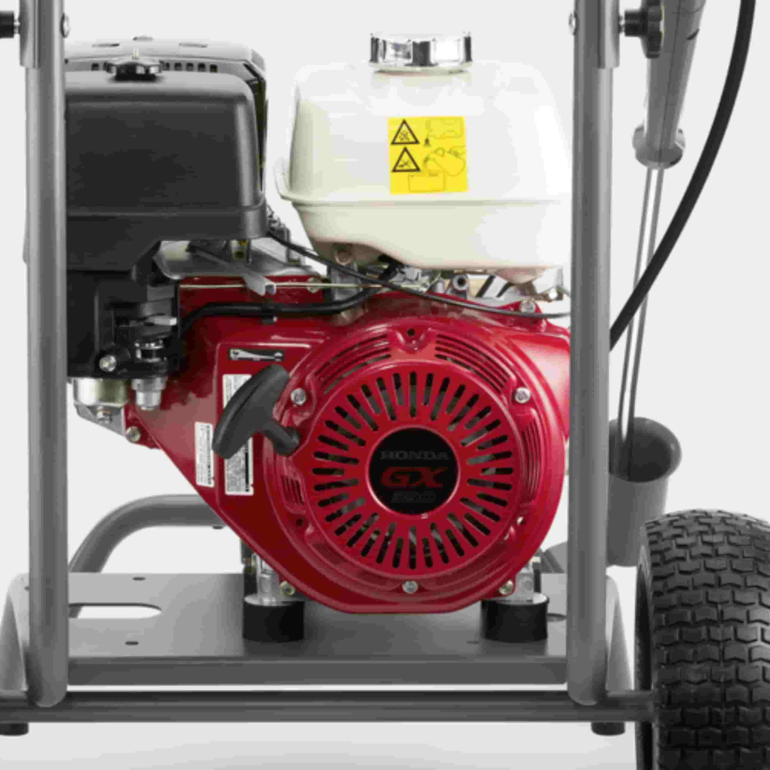 - Myjka HD 9/23 G to urządzenie spalinowe wyposażone w wytrzymały silnik marki Honda (rodzaj: GX390) napędzany benzyną. Cały osprzęt myjki chroni solidna stalowa rama. Dodatkowo myjka posiada zawór termiczny do ochrony pompy przed przegrzaniem w czasie pracy.