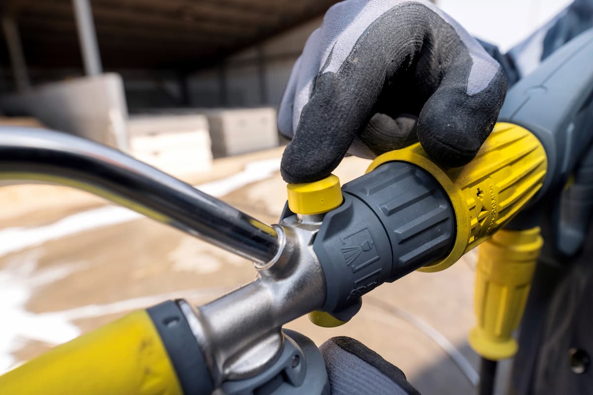 - Jeden obrót złącza o 360° wystarczy, aby podłączyć lancę lub wąż.