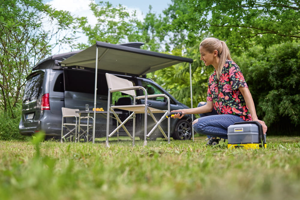 OC 3 to niewielka myjka która działa samodzielnie, dzięki wbudowanemu akumulatorowi oraz zbiornikowi na wodę. Sprawdza się wyśmienicie podczas czyszczenia lekkich zabrudzeń w terenie, jak np. wyczyszczenie roweru czy butów z błota. Ponadto, można ją bezpiecznie stosować do opłukiwania z błota lub innych zabrudzeń zwierząt.