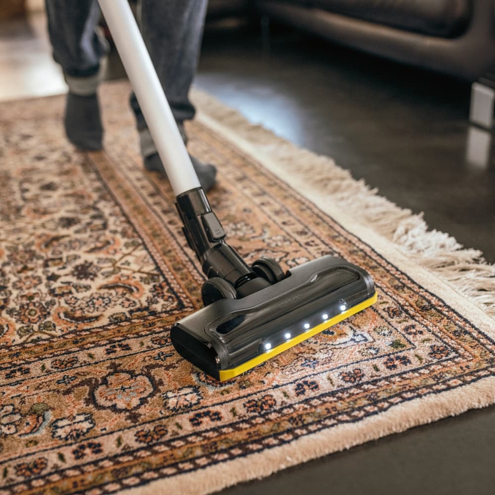 Efektywne usuwanie zanieczyszczeń dzięki zasilanej ssawce do podłóg. Łatwe manewrowanie pod meblami gwarantuje niezawodne czyszczenie powierzchni.
