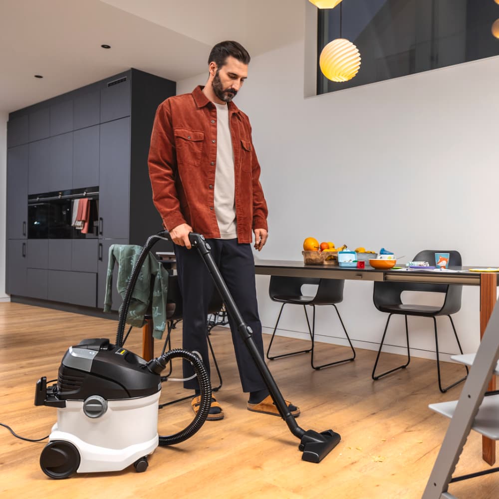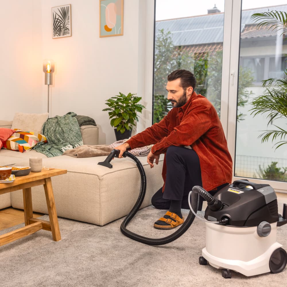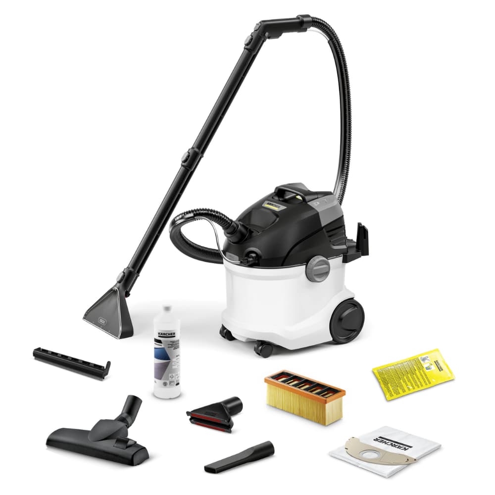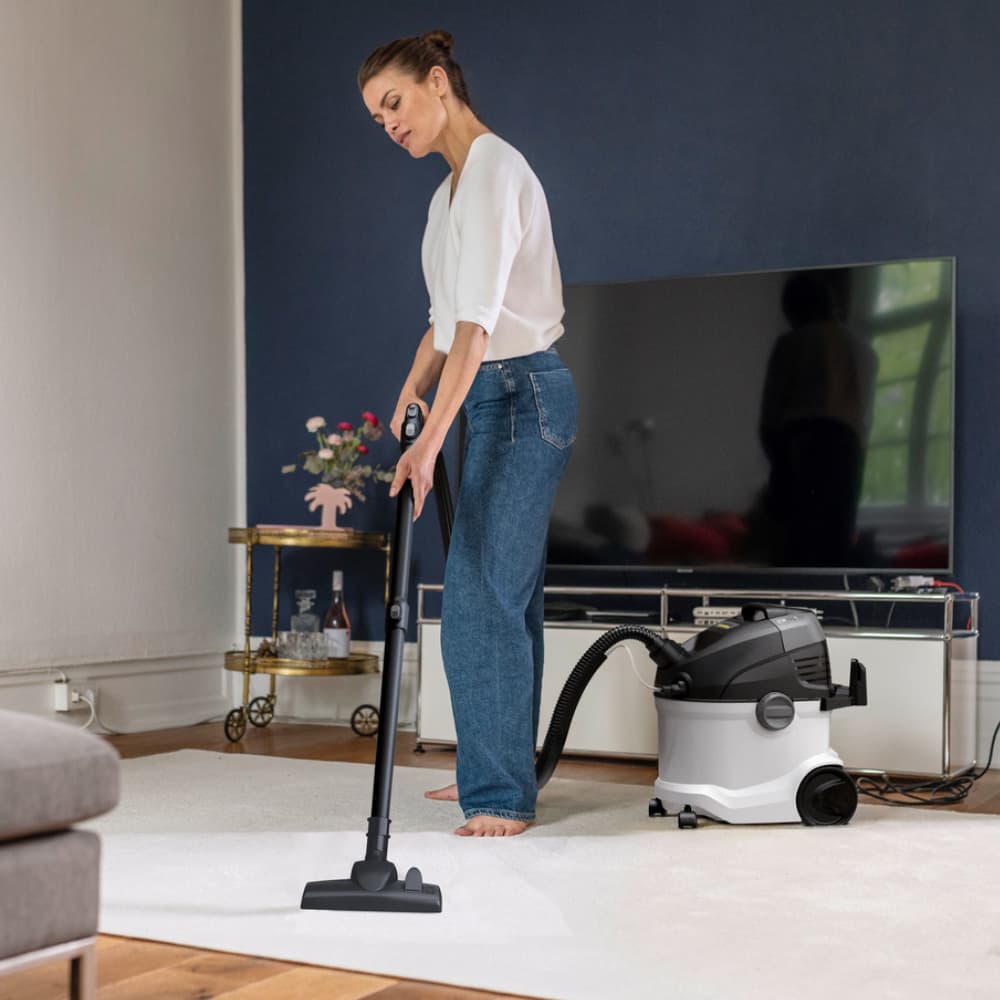 Technologia spryskiwania i odsysania od Kärcher gwarantuje doskonałe rezultaty czyszczenia: świeża woda i detergent do dywanów Kärcher RM 519 są wprowadzane pod ciśnieniem w głąb włókien, a następnie odsysane razem z brudem, co sprawia, że jest to idealne rozwiązanie dla rodzin, alergików i osób z zwierzętami. SE 5 to uniwersalny model 3 w 1, który dzięki różnorodnym akcesoriom może być używany jako odkurzacz do wszystkich powierzchni. Dodatkowe funkcje obejmują system 2-zbiornikowy z wyjmowanymi pojemnikami na wodę, ergonomiczny uchwyt do przenoszenia i praktyczny schowek na akcesoria. Łatwe czyszczenie urządzenia po użyciu zapewnia jego długotrwałą funkcjonalność.
