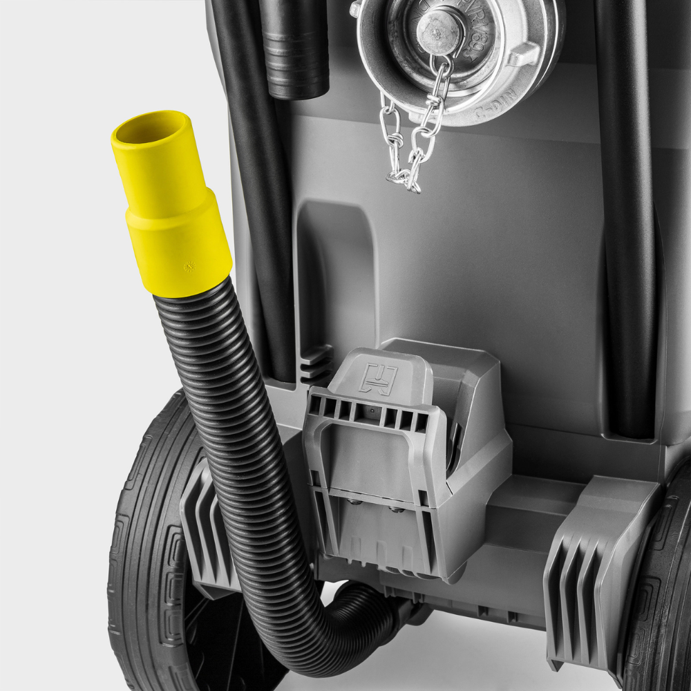 Odkurzacz NT 50/1 Mwf to wszechstronne i wydajne urządzenie do pracy na mokro i sucho, stworzone z myślą o wysokich wymaganiach straży pożarnej. Posiada 50-litrowy zbiornik, regulowany uchwyt oraz koła skrętne, które zapewniają łatwość manewrowania i mobilność podczas akcji ratunkowych. Dzięki złączu GEKA-C można podłączyć standardowe węże pożarnicze, a pompa o wydajności 330 litrów na minutę pozwala na szybkie odprowadzanie wody po pożarach lub powodzi. Bezpieczeństwo użytkowania zwiększa wyłącznik PRCD-K z wtykiem IP68 oraz filtr do większych zanieczyszczeń, który chroni pompę przed zatkaniem.