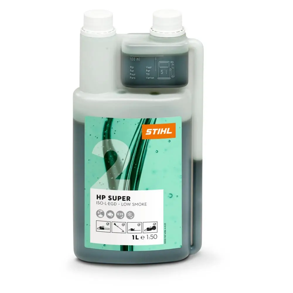 Dzięki niskiej emisji spalin i doskonałym właściwościom smarnym, STIHL HP Super jest idealnym wyborem do urządzeń spalinowych. Zielone zabarwienie oleju pomaga w kontrolowaniu odpowiednich proporcji mieszanki.