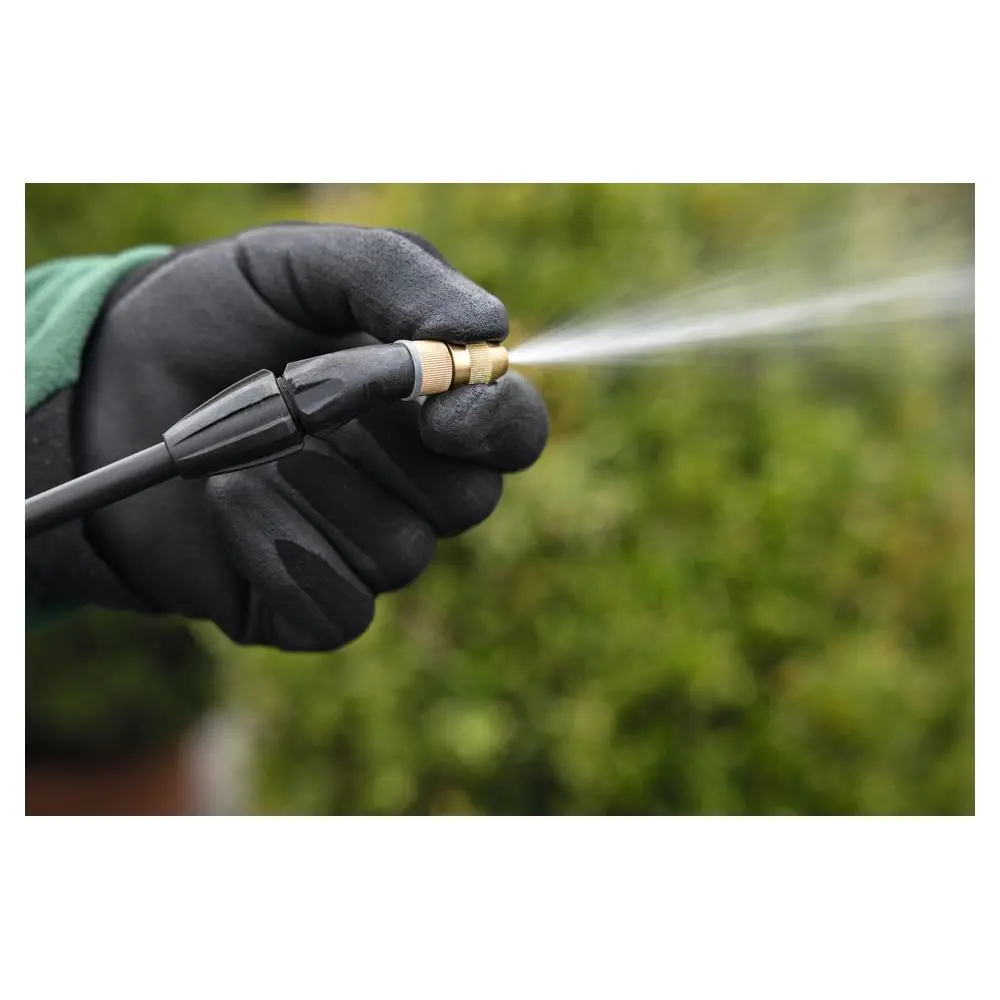 Mosiężna dysza stożkowa i regulacja ciśnienia umożliwiają precyzyjne nanoszenie preparatów. Zintegrowany filtr zapobiega zanieczyszczeniom, co zwiększa trwałość urządzenia.