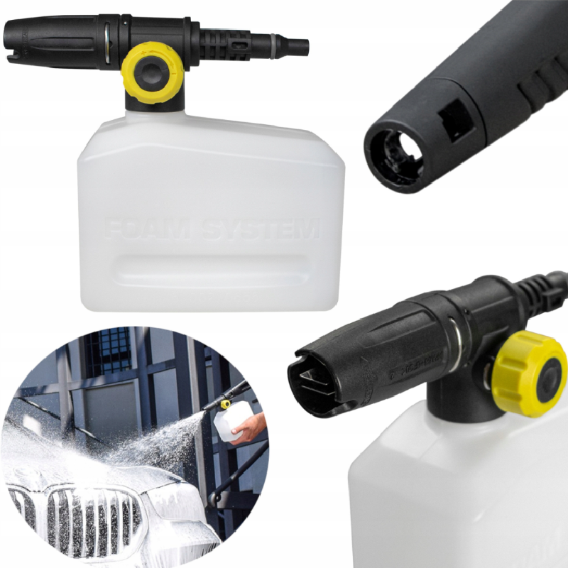 - Do pianownicy zaaplikuj szampon do mycia auta. Następnie spryskaj auto pianą, która powstała w pianownicy.