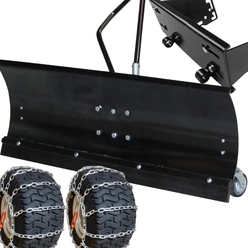 Pług do śniegu 100 cm do traktorków ogrodowych + Mocowanie + Łańcuchy na koła