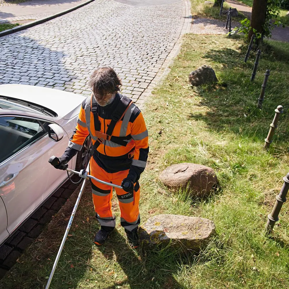 Prezentujemy pierwszy trymer systemu AS STIHL FSA 30, idealne narzędzie do trymowania i prostych prac wykończeniowych w przydomowym ogrodzie. Dzięki lekkiej konstrukcji wynoszącej zaledwie 2,3 kg łącznie z akumulatorem (28 Wh), osłoną i głowicą koszącą, STIHL FSA 30 wyjątkowo łatwo i precyzyjnie kosi krawędzie trawnika.