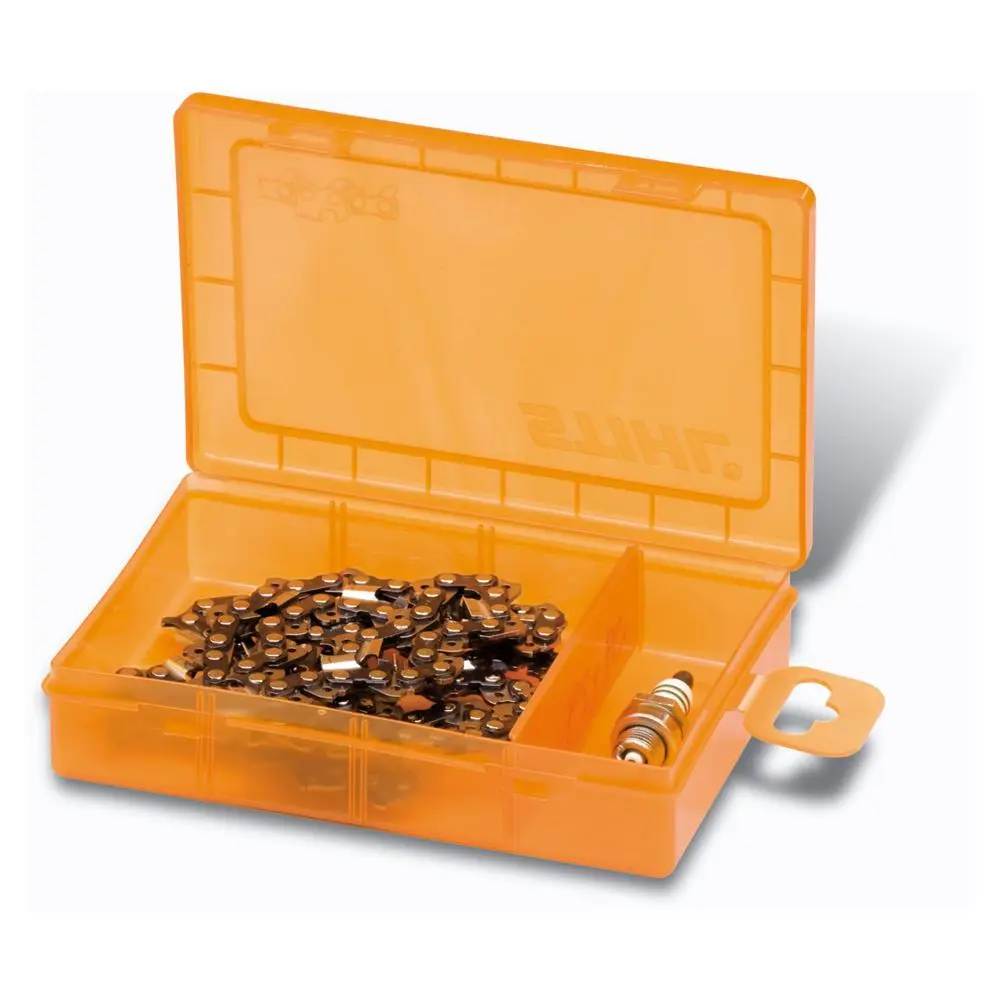 Pojemnik na piłę łańcuchową STIHL został zaprojektowany z myślą o długotrwałym użytkowaniu. Wytrzymałe tworzywo, z którego został wykonany, jest odporne na uszkodzenia mechaniczne oraz warunki atmosferyczne, co sprawia, że idealnie nadaje się zarówno do przechowywania w warsztacie, jak i do transportu na plac budowy czy w terenie.
