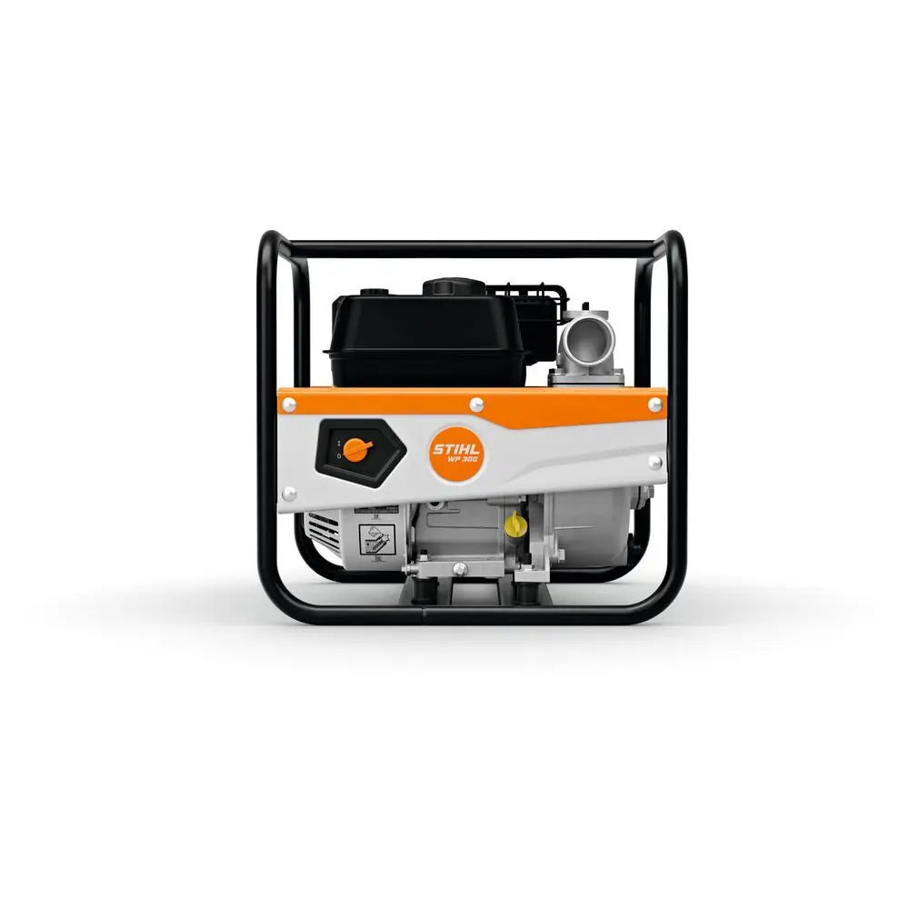 Stihl WP 300 posiada solidną ramę, która zapewnia stabilność pompy na różnych powierzchniach. Rama chroni również silnik przed uszkodzeniami mechanicznymi, co zwiększa trwałość urządzenia. Dzięki mocnej ramie, pompa może pracować stabilnie nawet w trudnych warunkach terenowych, co jest kluczowe podczas pracy w terenie. Stabilność i ochrona silnika to dodatkowe atuty, które czynią WP 300 niezawodnym narzędziem.