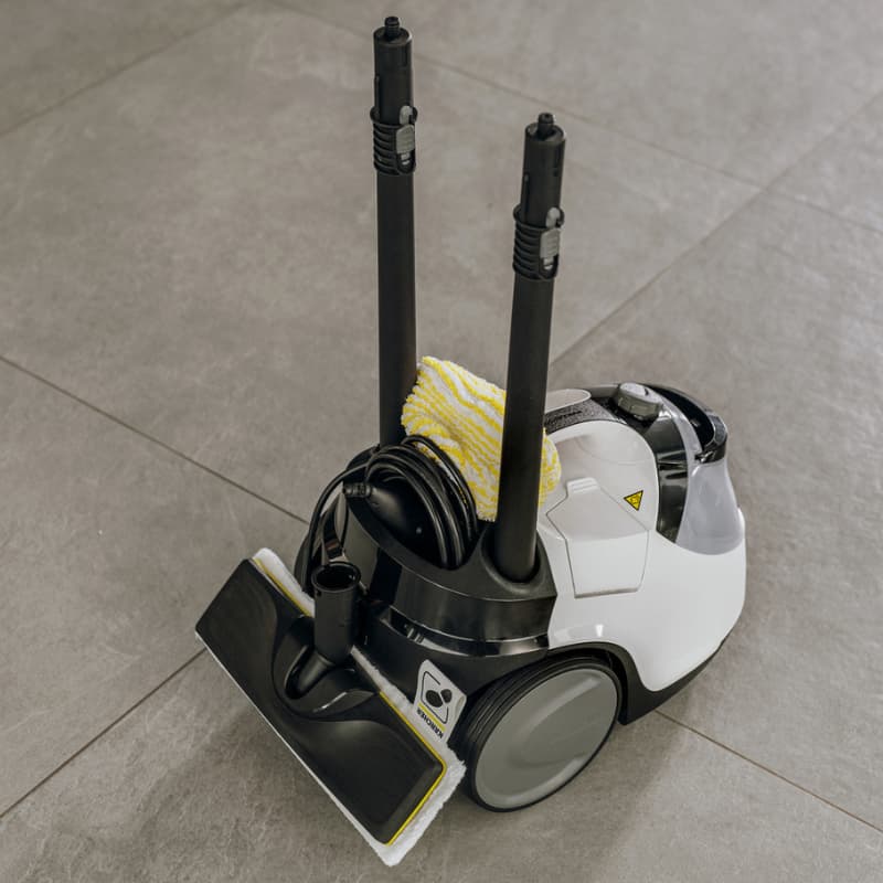 W zestawie z parownicą Karcher SC 5 EasyFix Home Line znajdziesz bogaty zestaw akcesoriów, które umożliwiają czyszczenie różnych powierzchni. Są to m.in. dysza punktowa, szczotka okrągła, a także ściereczka z mikrofibry. Dzięki tym elementom z łatwością poradzisz sobie z czyszczeniem kranów, płytek, okapów czy szyb. Akcesoria można wygodnie przechowywać na urządzeniu, co oszczędza miejsce i zapewnia porządek.