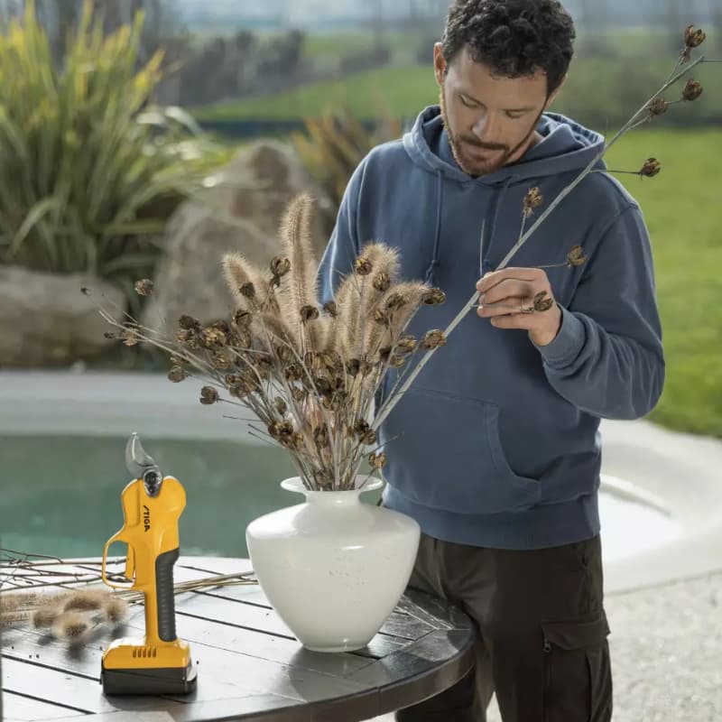 Inwestycja w sekator Stiga SC 100e to inwestycja w długotrwałą jakość. Bezszczotkowy silnik o mocy 500 W zapewnia nie tylko ciche działanie, ale także do 2000 cięć na jednym ładowaniu. To oznacza, że możesz pracować efektywnie bez konieczności częstego przerywania pracy na ładowanie baterii, co jest szczególnie ważne podczas intensywnych prac ogrodowych.