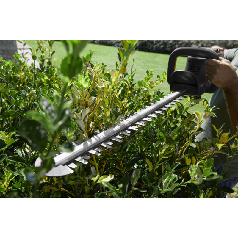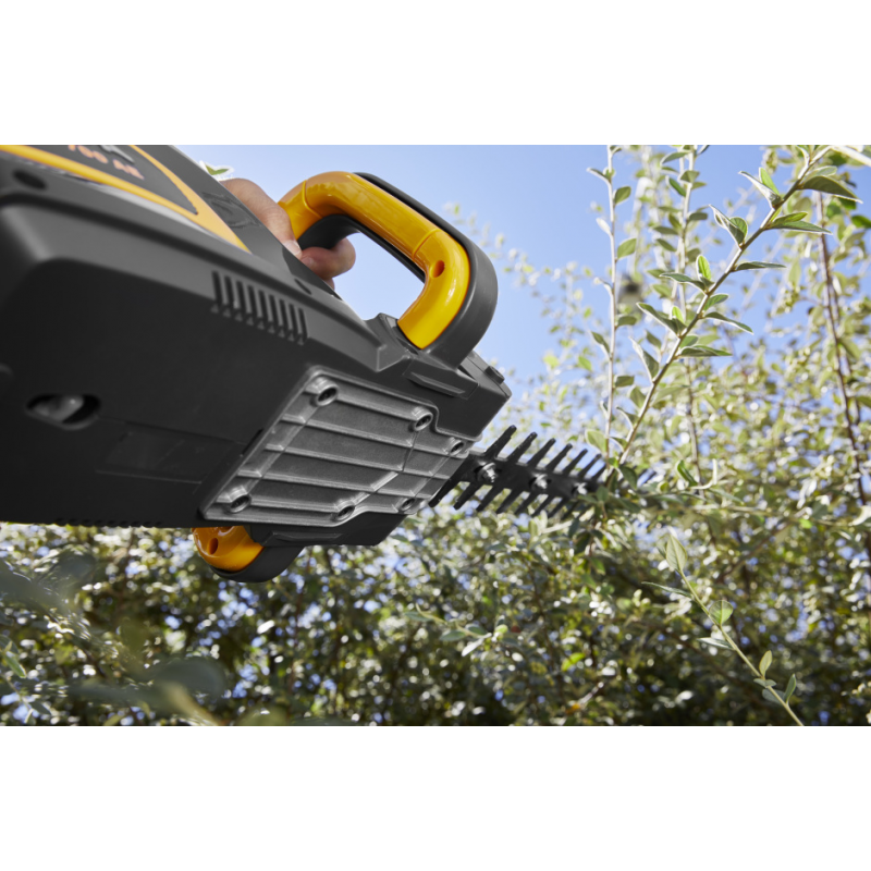 Dzięki dwufunkcyjnej synchronizowanej przekładni, która zasila dwa ostrza z prędkością 3500 obr./min, elektryczne nożyce do żywopłotu SHT 700 umożliwiają długotrwałe cięcie na jednym ładowaniu.