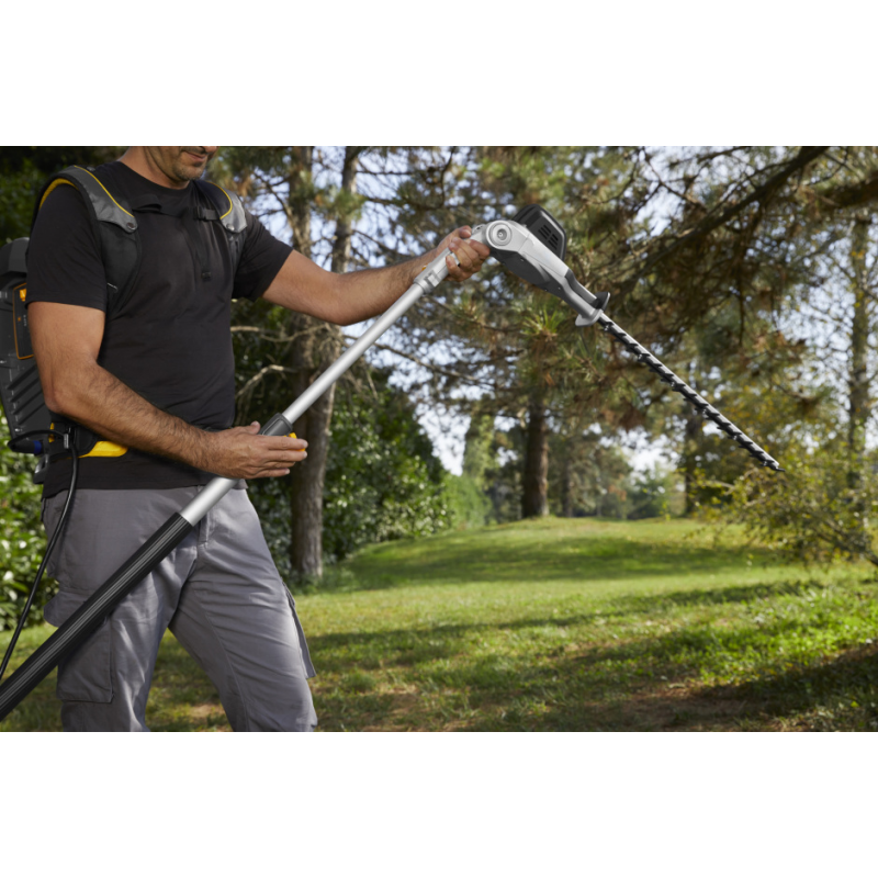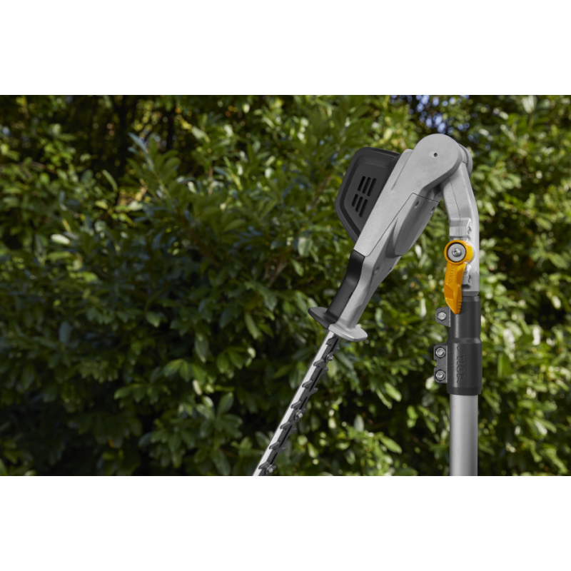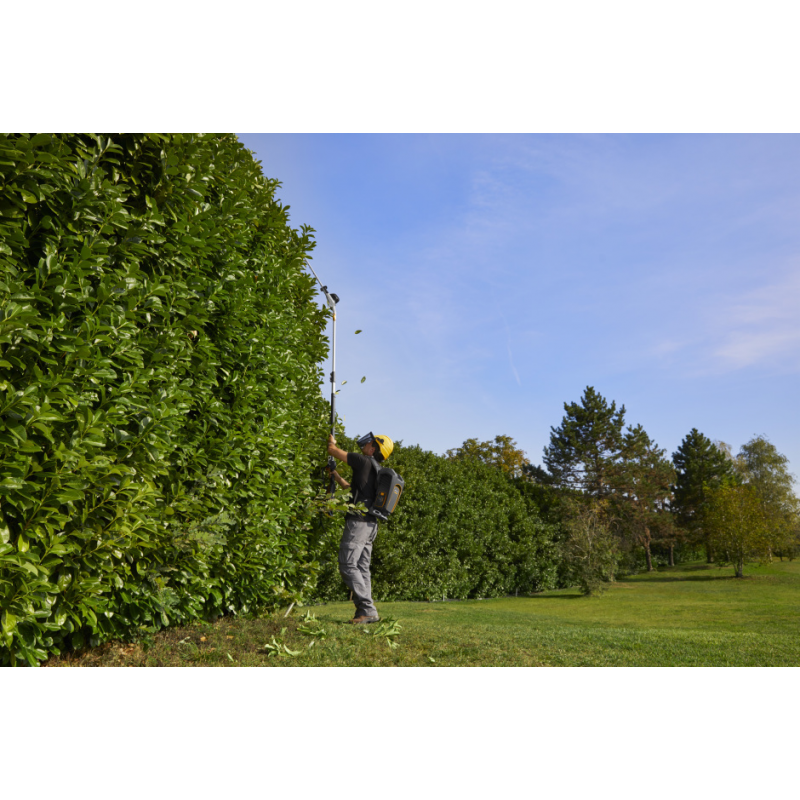 Teleskopowy wałek pozwala na osiągnięcie do 4 m wysokości – dzięki czemu wysokie żywopłoty i gałęzie są łatwo dostępne.