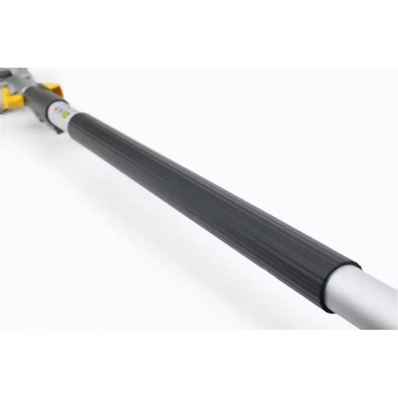 Teleskopowy wałek pozwala na osiągnięcie do 4 m wysokości i bezpieczne wykonywanie pracy stojąc na ziemi – wysokie żywopłoty oraz gałęzie stają się łatwo dostępne.