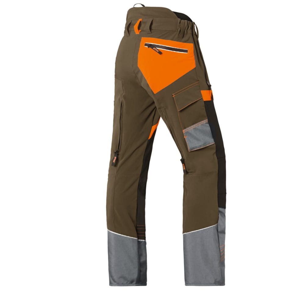 Te mocne spodnie dla arborystów są idealne do intensywnej pracy w terenie. Wykonane z 89% poliestru i 11% elastanu, zapewniają doskonałą elastyczność i wentylację. Dodatkowo posiadają wodoszczelną strefę kolan oraz dolne części nogawek z zabezpieczeniem przed rozdarciami i wilgocią, co sprawia, że są odporne na zabrudzenia. Spodnie wyposażone są w otwory wentylacyjne zapinane na zamek błyskawiczny z tyłu, osłonę nerek oraz praktyczne haczyki do połączenia ze sznurówkami. Zamykane kieszenie oraz elementy odblaskowe zwiększają funkcjonalność i bezpieczeństwo użytkowania.