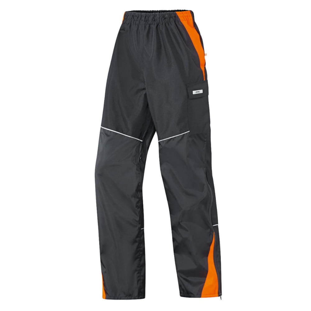 Spodnie wyposażone w zamki błyskawiczne do wentylacji na wysokości ud oraz zamek błyskawiczny z boku, który ułatwia ich nakładanie. Otwory wentylacyjne na wysokości bioder z dostępem do spodni roboczych zapewniają dodatkowy komfort. Sprawdzone zabezpieczenie przed kolcami z materiału ACTION ARCTIC w strefach najbardziej narażonych na uszkodzenie gwarantuje trwałość. Praktyczna kieszeń na wysokości uda oferuje miejsce na przechowywanie niezbędnych przedmiotów. Spodnie wykonane są z mieszanki 70% poliestru i 30% poliamidu. Posiadają najwyższą klasę 3 w zakresie przewiewności zgodnie z normą EN 343, zapewniając niezawodną ochronę przed deszczem, wiatrem i śniegiem.