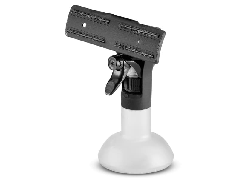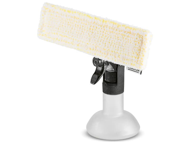 Spryskiwacz Zestaw zawierający spryskiwacz, pad z mikrofibry zapinany na rzepy, skrobaczkę do uciążliwych zabrudzeń oraz 20ml koncentratu do mycia szkła. Właściwości