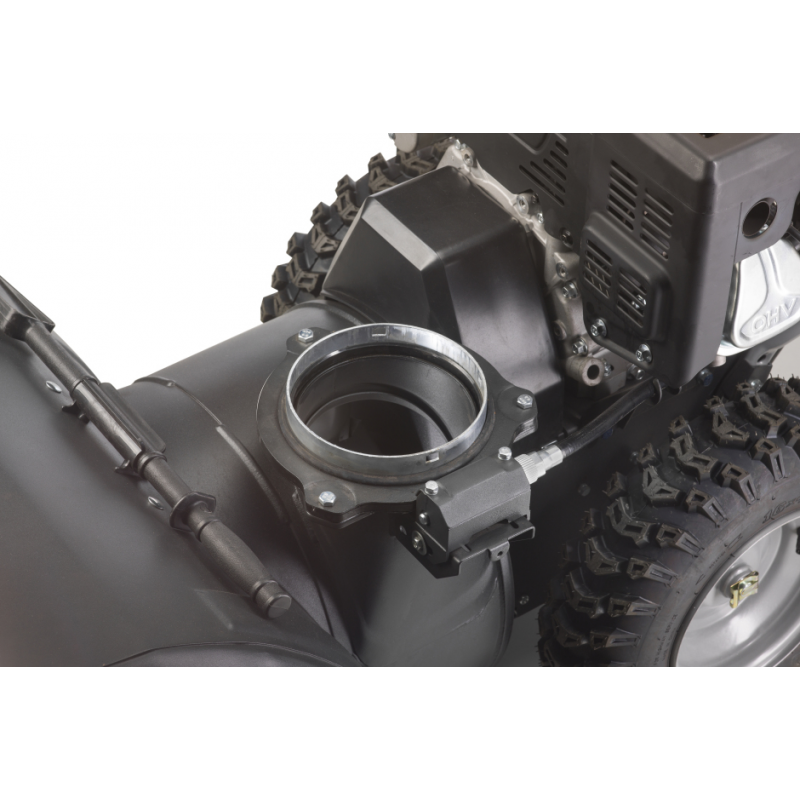 Możliwa jest łatwa manipulacja kierunkiem, w którym wyrzucany jest śnieg (do 12 m), za pomocą regulowanego deflektora.