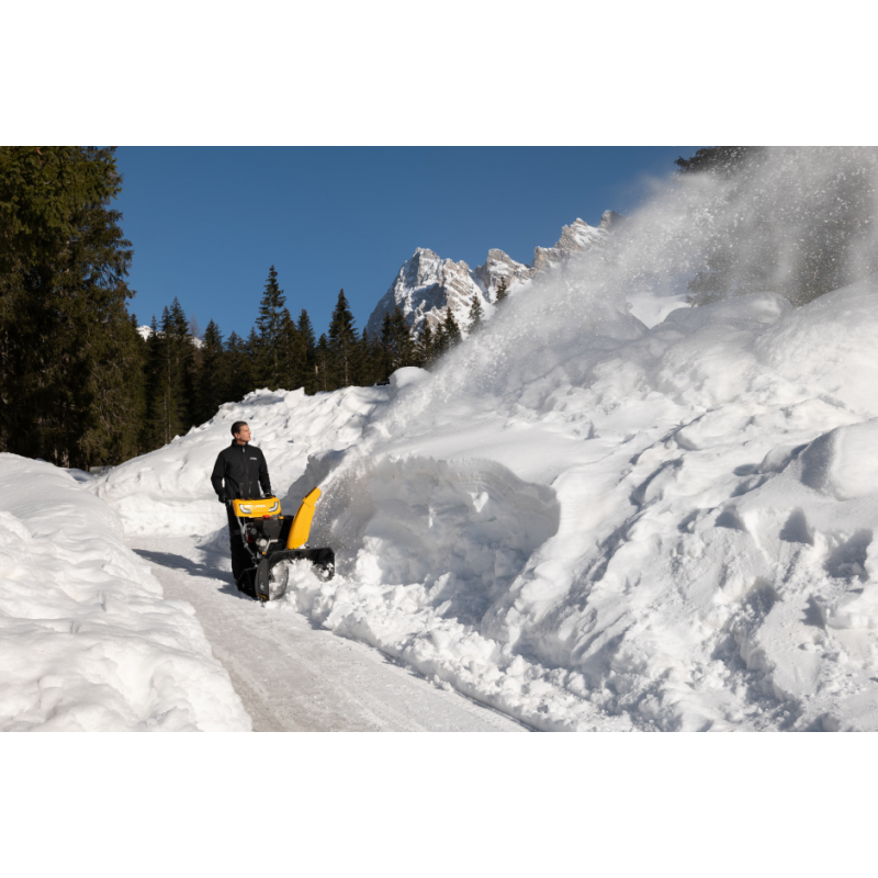 Stalowy ślimak zębaty pozwala radzić sobie z różnymi rodzajami śniegu, od puchu po zbity śnieg, wyrzucając go na odległość do nawet 13 metrów.