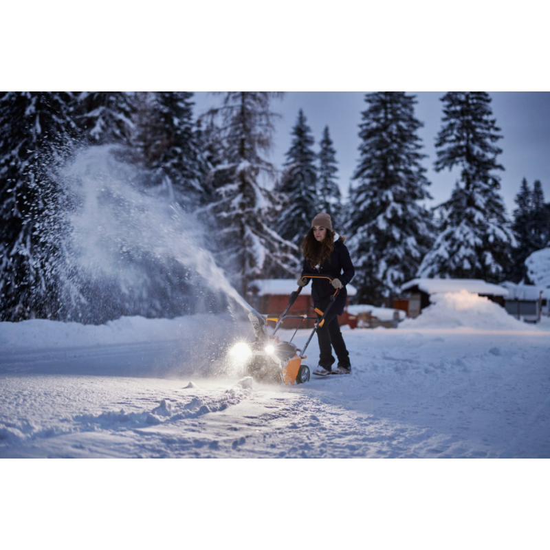 Dodatkowo jasne reflektory LED są idealne do korzystania z odśnieżarki o ciemniejszych porach dnia, wieczorem i przy słabej widoczności.
