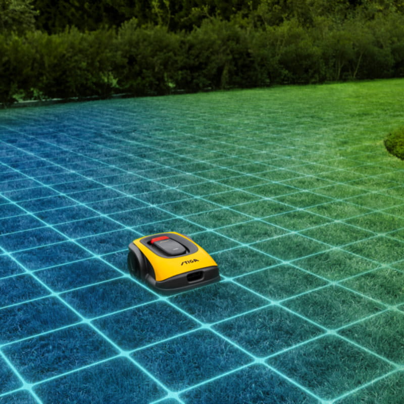 - Bez przewodów. Instalację wykonuje się wirtualnie i prosto za pośrednictwem aplikacji STIGA.GO