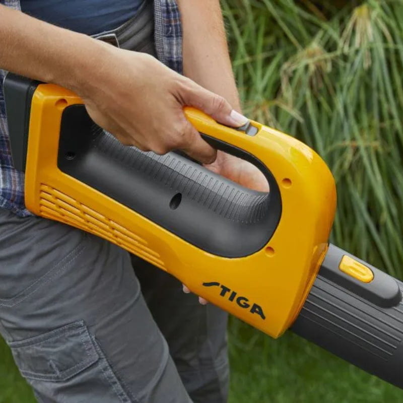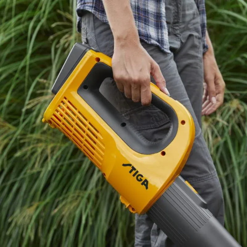Dzięki przemyślanemu projektowi, dmuchawa STIGA jest nie tylko wydajna, ale także niesamowicie wygodna w użyciu. Ergonomiczna rączka i lekka konstrukcja zapewniają, że nawet długotrwałe użytkowanie nie jest męczące dla ramion. Kratka wentylacyjna chroni silnik przed przegrzewaniem, gwarantując płynną pracę przez cały czas.