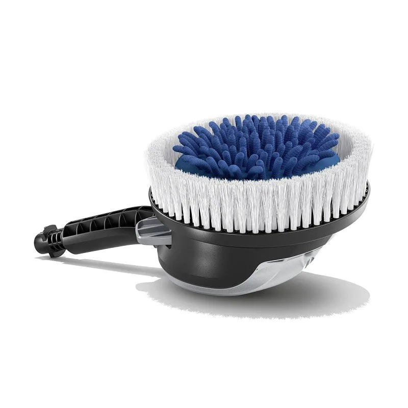 Dzięki podłączeniu szczotki do urządzenia wysokociśnieniowego możliwa jest aplikacja środka czyszczącego bezpośrednio na mytą powierzchnię, co zapewnia jeszcze dokładniejsze i efektywniejsze czyszczenie.