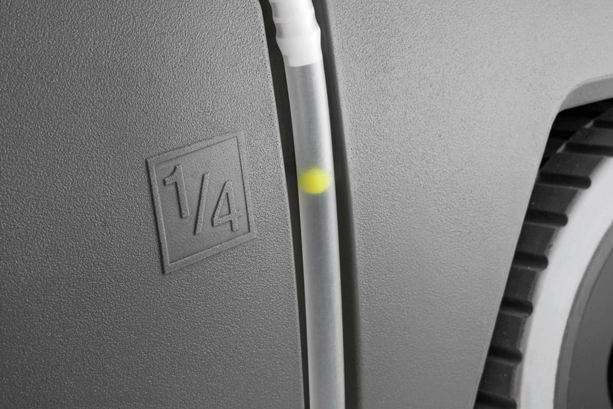Pojedynczy wyświetlacz obok panelu sterowania pokazuje czas pracy urządzenia. Czytelne symbole i żółte elementy obsługowe ułatwiają pracę każdemu użytkownikowi.