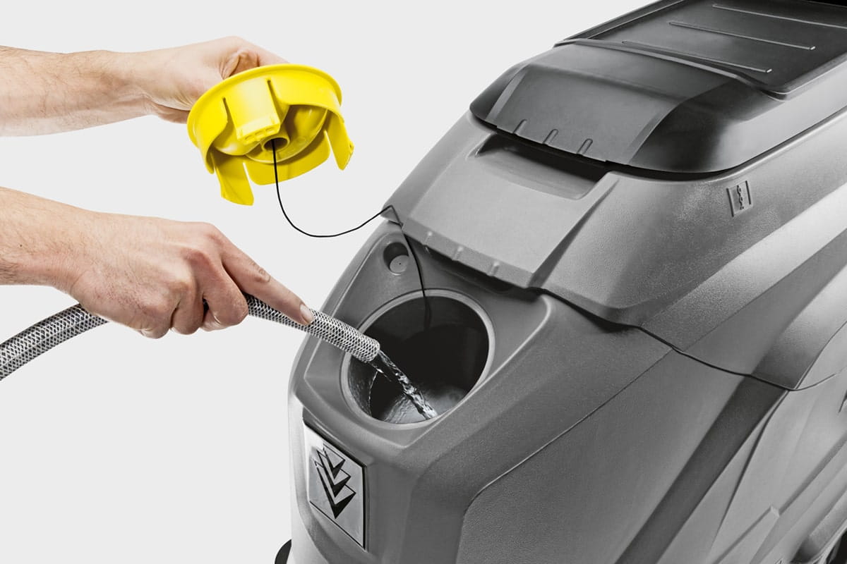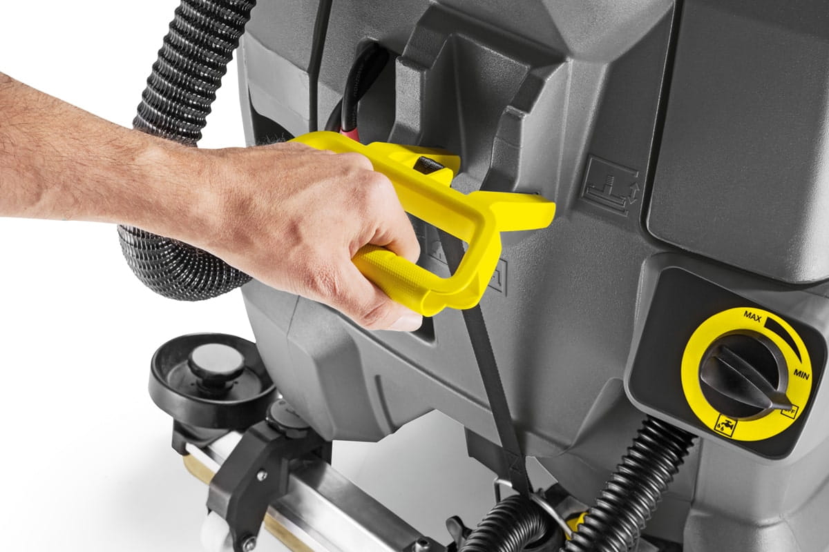 Czerwona szczotka tarczowa oraz belka ssawna w kształcie litery „V” do wydajnego odsysania pozostałości po szorowaniu stanowią elementy wyposażenia szorowarki. Urządzenie posiada też 50 litrowy zbiornik na środek chemiczny rozcieńczony z wodą oraz 50 litrowy zbiornik na pozostałości po szorowaniu. Dodatkowo w maszynie zastosowano szereg elementów ułatwiających użytkowanie.