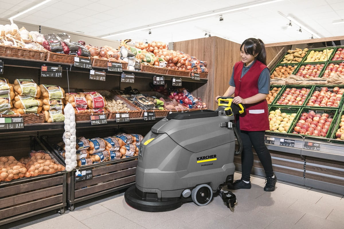 BD 50/60 C EP Kärcher to profesjonalna, wydajna (wydajność praktyczna wynosi 1020 m²/h) i wszechstronna szorowarka prowadzona ręcznie, zasilana sieciowo (230 V/50 Hz).