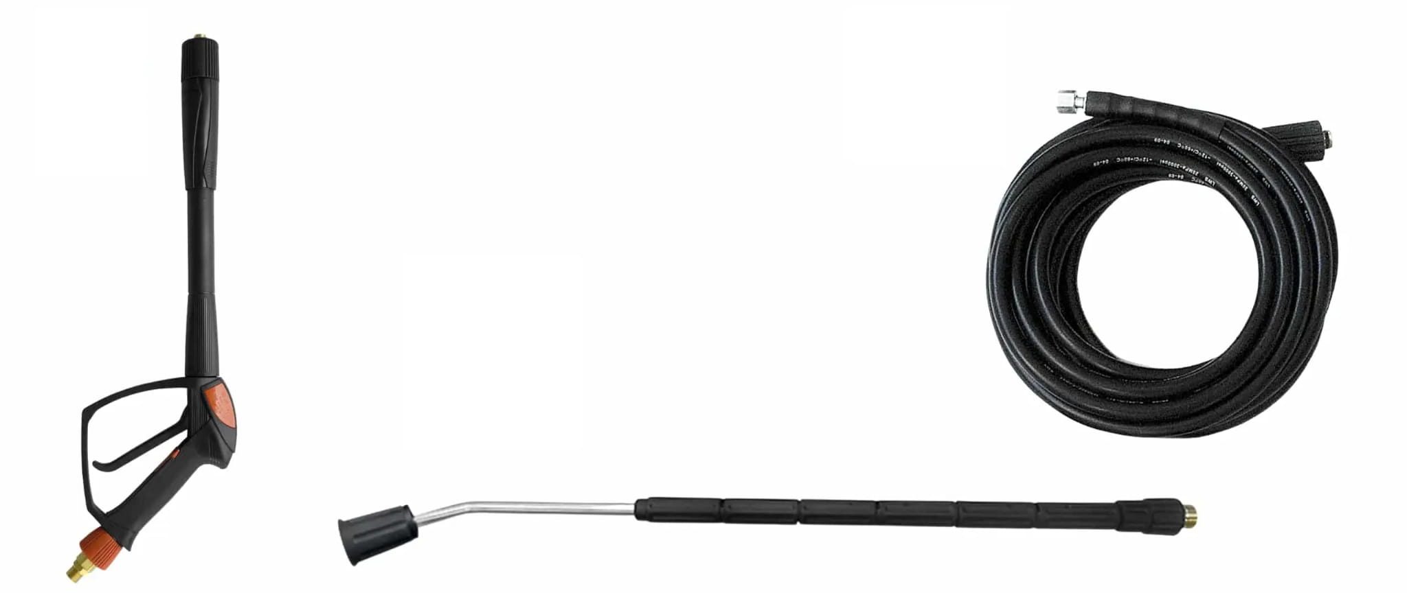 - Długi wąż wysokociśnieniowy o długości 10 metrów, zapewniający swobodę ruchu.