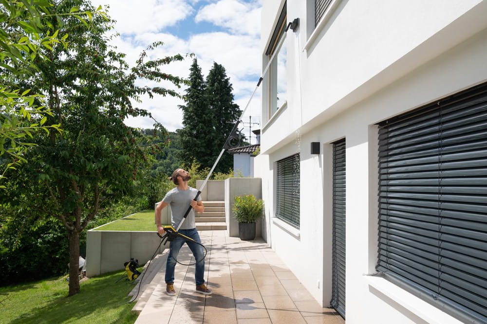 Teleskopowa lanca TLA 4 nadaje się do czyszczenia trudno dostępnych miejsc na elewacji, które teraz można wyczyścić szybko i bez najmniejszego wysiłku. Przegub z możliwością regulacji w zakresie 180 stopni to kolejna zaleta, która umożliwia czyszczenie ogrodów zimowych, skośnych dachów oraz wiat samochodowych.