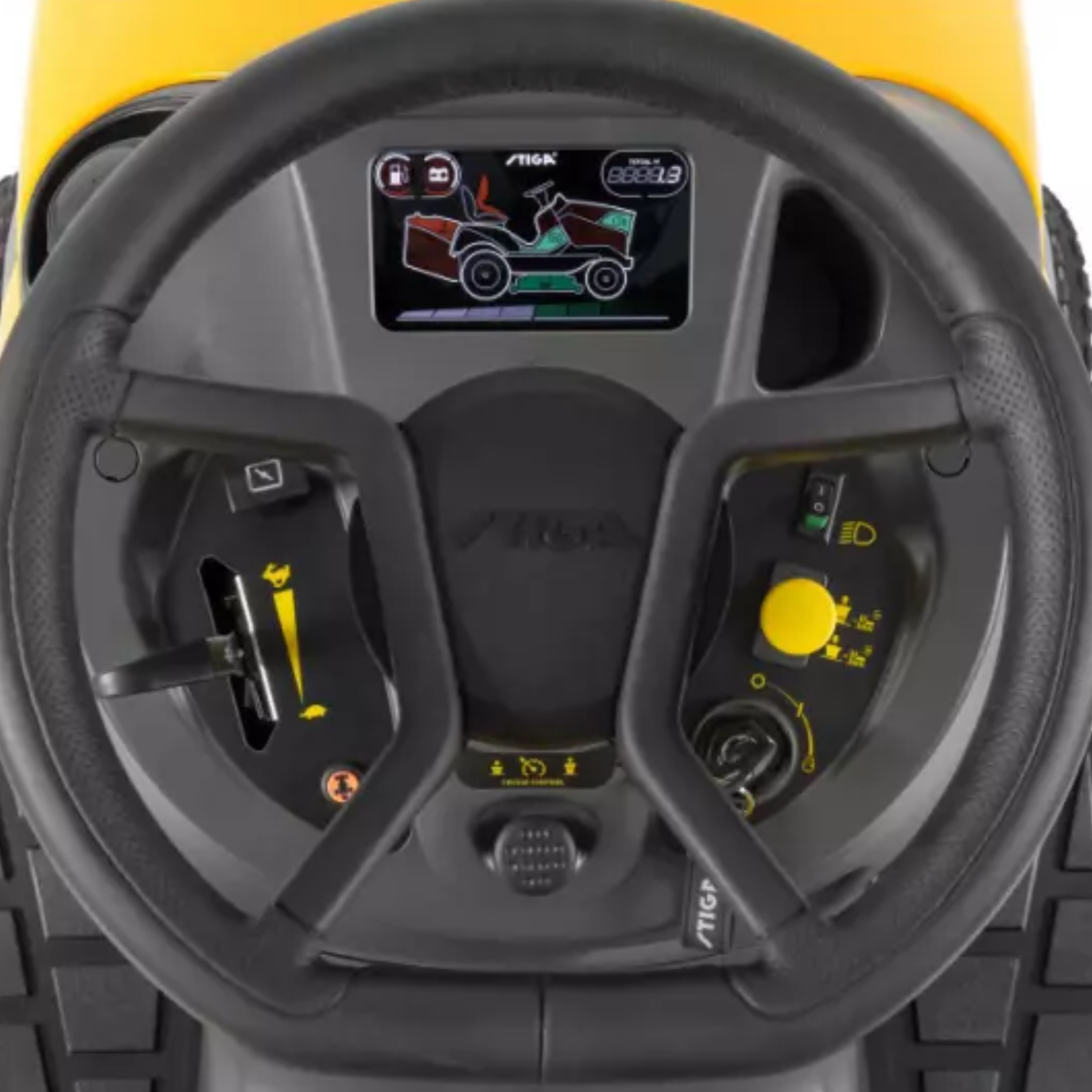 Dzięki miękkiej rękojeści kierownicy STIGA Premium, ergonomicznemu siedzeniu Comfort Plus z podłokietnikami i funkcji tempomatu, będziesz cieszyć się doskonałym komfortem jako kierowca. Komfort jazdy jest niezbędny dla każdego, kto regularnie wykonuje czasochłonną pracę koszenia.