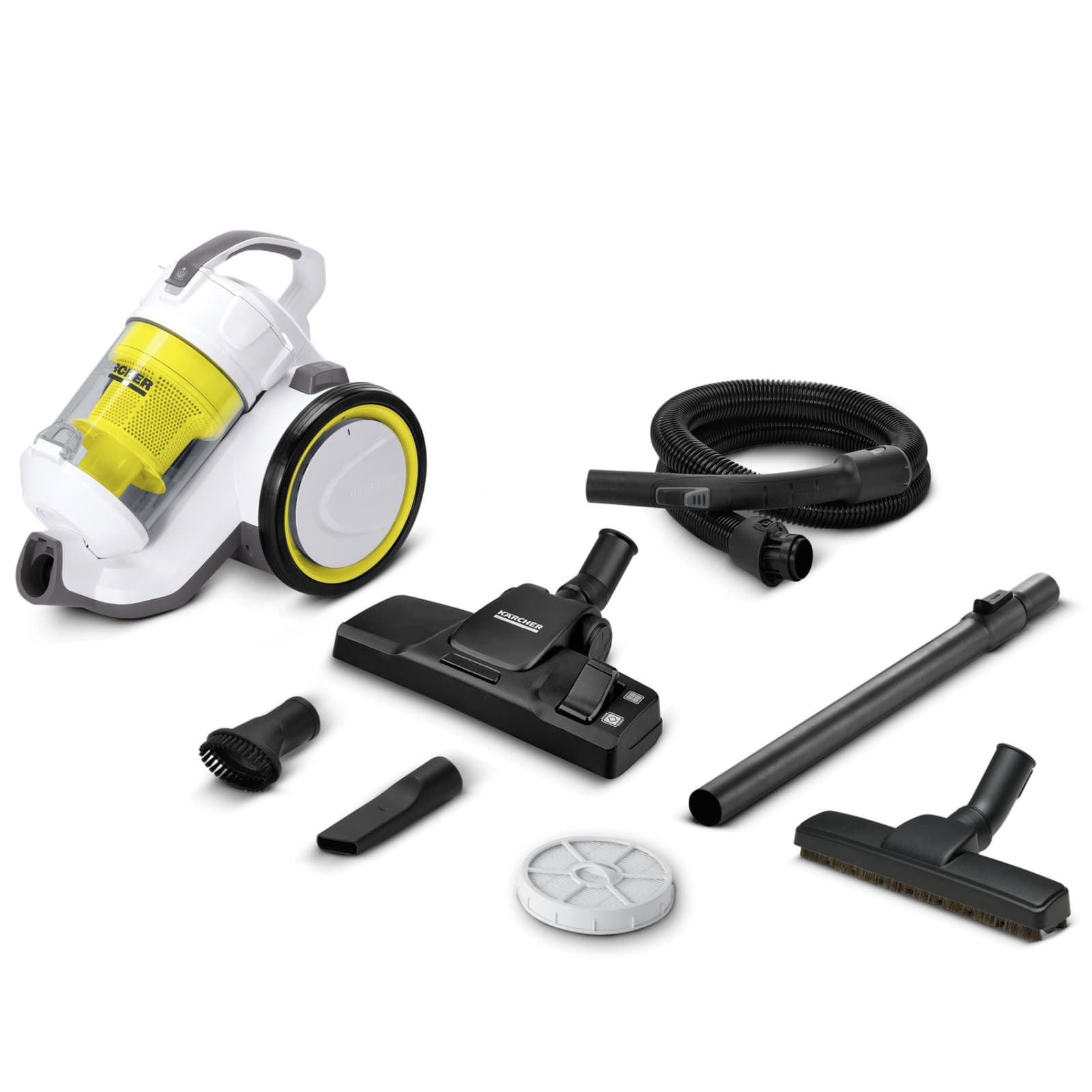 Nowo opracowana ssawka do podłogi i teleskopowa rura ssąca Ssawka doskonale sprawdza się w codziennym czyszczeniu paneli podłogowych czy dywanów. Rozkładana teleskopowa rura ssąca pozwala na szybkie dopasowanie wysokości do osoby sprzątającej. Praktyczna pozycja parking Specjalne uchwyt na obudowie urządzenia pozwalają na przymocowanie ssawki wraz z rurą ssącą oraz wężem. Sprawia to, że odstawienie odkurzacza podczas przerw w pracy jest szybkie i bezpieczne. Zwijacz kabla zasilającego Umożliwia wygodne przechowywanie przewodu wewnątrz odkurzacza. Przewód zasilający jest zwijany automatycznie. Kompaktowy design Wygodny i lekki, dzięki kompaktowym wymiarom nie zabiera miejsca podczas przechowywania. Technologia multicyklonowa Brak konieczności wymiany tradycyjnych worków. Zbiornik może być w prosty sposób czyszczony wodą. Higieniczny filtr HEPA Dokładnie filtruje nawet najmniejsze cząstki brudu np. pyłki lub inne alergeny. Czyste powietrze wylotowe. Gumowe koła Są przyjazne dla wrażliwych powierzchni, nie rysują ich. | ![]() |