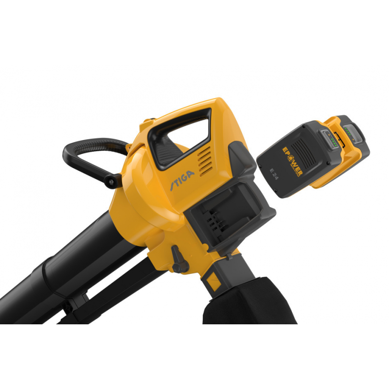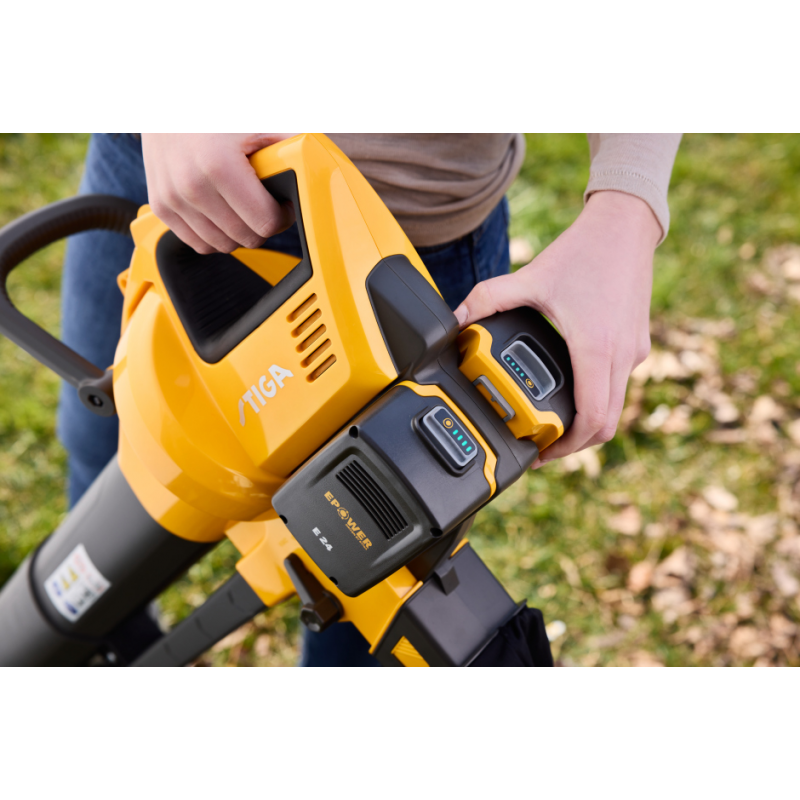 Używa dwóch akumulatorów Stiga ePower 20 V o pojemności 4 Ah (w komplecie jest podwójna ładowarka)23 minuty wydmuchiwania oraz około 18 minut odkurzania.