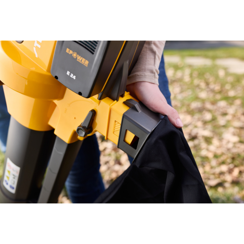 Wystarczy obrócić dźwignię, żeby wydmuchać liście albo wciągnąć zanieczyszczenia do rozdrabniacza, który automatycznie rozdrobni je w ściółkę.