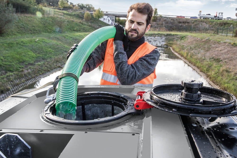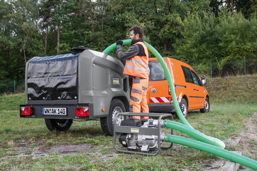 Pompa wody brudnej jest niezależna od zasilania i dlatego jest odpowiednia dla wielu grup docelowych. Jest wyposażony w mocny silnik benzynowy, który pozwala na wysoki stopień niezależności dla wielu różnych zastosowań. Jedno napełnienie zbiornika paliwa zapewnia co najmniej 2,2 godziny pracy, a zatem pozwala na pompowanie ~100000 l wody. Silnik jest zgodny ze standardami emisji EU STAGE V.