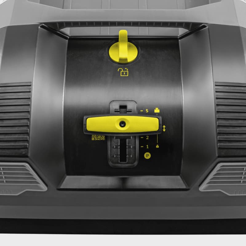 Myśląc o użytkowniku, zamiatarka została zaprojektowana z naciskiem na ergonomię. Regulowany uchwyt do pchania umożliwia dostosowanie wysokości do potrzeb operatora, a system Home Base pozwala na przenoszenie dodatkowego wyposażenia, co zwiększa wygodę pracy.