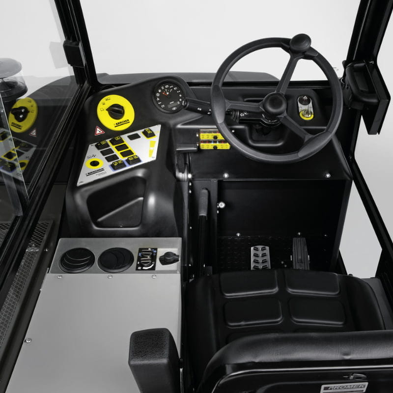 Zamiatarka przemysłowa Karcher ułatwia pracę każdemu operatorowi. Jej intuicyjna obsługa i czytelnie oznakowane funkcje pozwalają nawet niedoświadczonym użytkownikom łatwo zarządzać maszyną. Z myślą o komforcie operatora, zamiatarka oferuje opcjonalną, ogrzewaną lub klimatyzowaną kabinę. Dobra widoczność wyświetlacza i prosta konserwacja, z łatwym dostępem do silnika i wymiennych elementów bez użycia narzędzi, sprawiają, że praca z tym urządzeniem to czysta przyjemność.