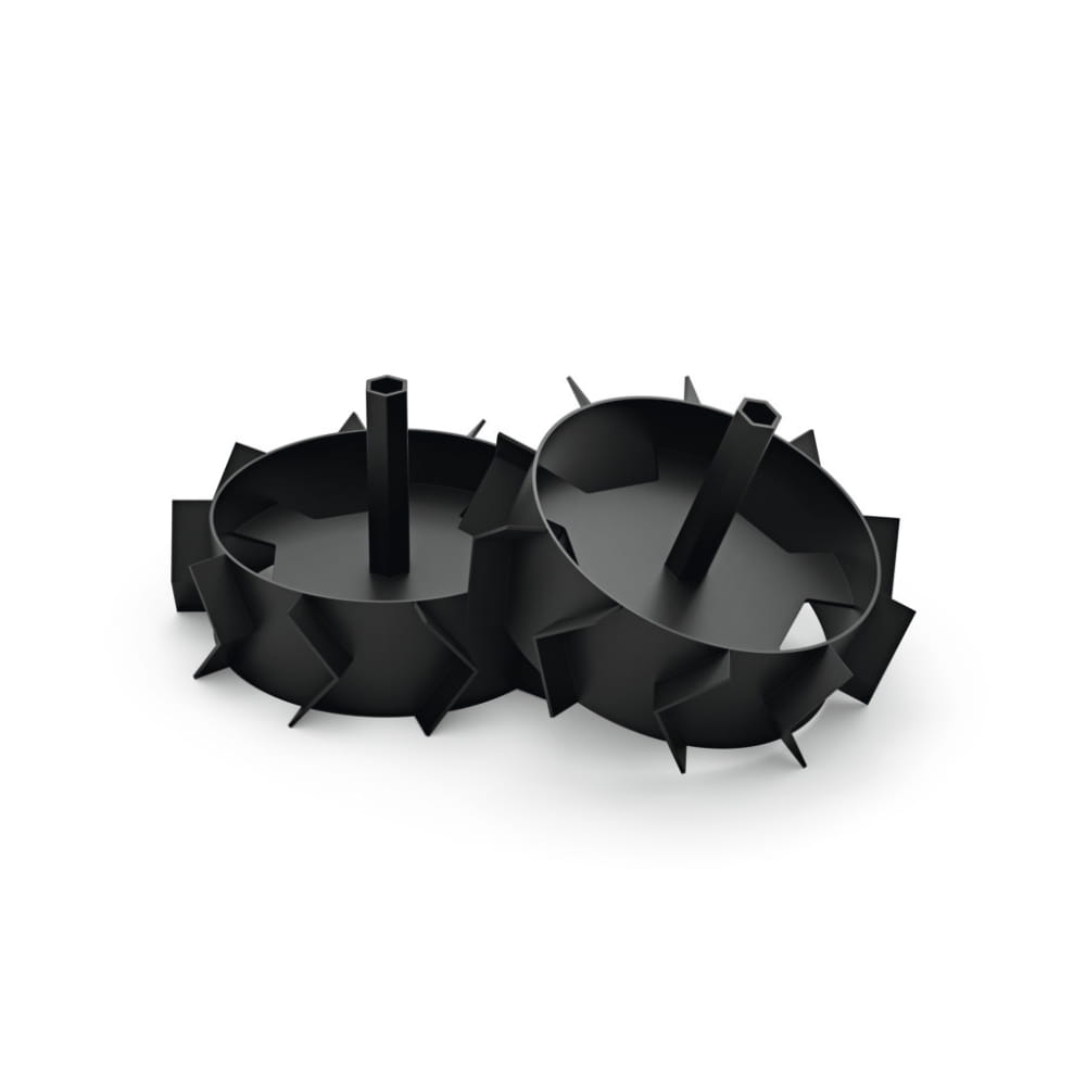 Dedykowane do modeli MH 560, MH 585 i MH 685, te koła stalowe zapewniają większą siłę napędową i poprawiają działanie korpusu do okopywania. Ich montaż sprawia, że praca z glebogryzarką jest bardziej wydajna, szczególnie podczas pracy w twardej ziemi. Zestaw waży 8,8 kg, co zapewnia stabilność i pewność podczas użytkowania.