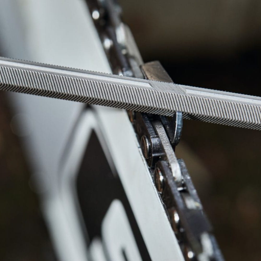 - Idealne dopasowanie pilnika do łańcucha – Sześciokątny kształt pilnika i specjalnie zaprojektowane zęby łańcucha pozwalają na idealne utrzymanie kąta ostrzenia, co przekłada się na doskonałe wyniki pracy.
